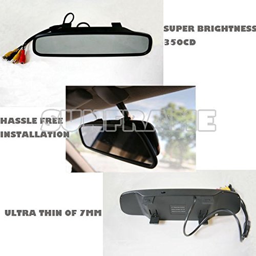 -. Feature : 4.3" TFT LCD mirror monitor with a built-in high-volume warning buzzer / Ultra-thin rear view mirror with 350CD/M2 brightness , the brightest in the marketplace. Clip-on the existing rear view mirror, hussle-free installation. / Automatic display rear view image and color grid lines when the car is on reverse mode / Color camera with various installation ways and the smallest size diameter of ¢16.5mm in the marketpace. Extra-low illumination of 0.3 Lux for clear night vision. / Water-proof, shock-proof and anti-jamming functions. One year warranty provided.