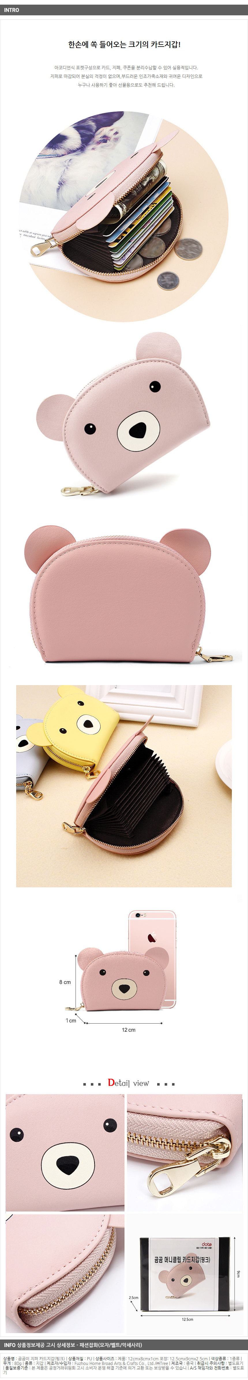 <상품명 : ZP8 곰곰이 지퍼 카드지갑(핑크)>