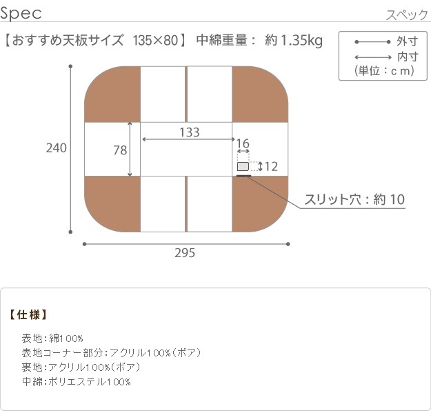 オススメこたつサイズ(約):135x80cm