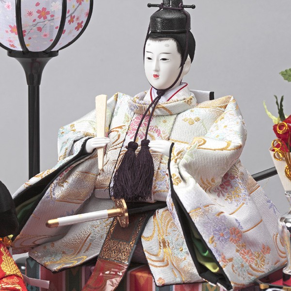 ・台座・屏風等には落ち着いた色目の雛人形セット。