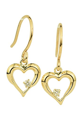 -. Feature : 材質: K10イエローゴールド 天然ダイヤモンド 0.02ct / サイズ:全長:15mm ハート:縦約7mm x 横約7mm / ポスト: 太さ 約0.6mm / 誕生石: 4月の誕生石 / 仕様:フックピアス 品質保証書付 (両耳用1ペア)