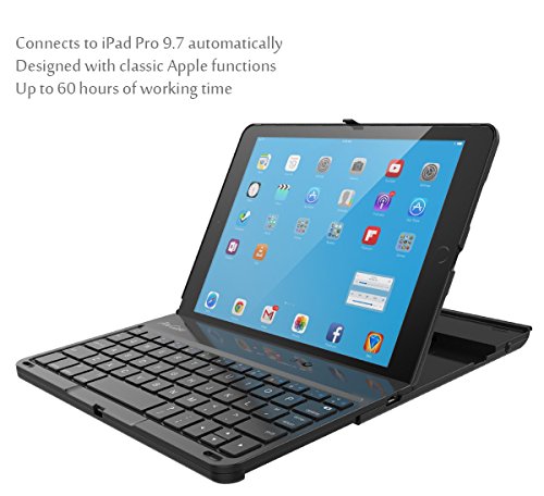 Premium Quality Keyboard: Connects to your iPad automatically; keyboard designed with classic Apple functions, giving you better typing experience. One single charge gives you up to 60 hours of working time using keyboard