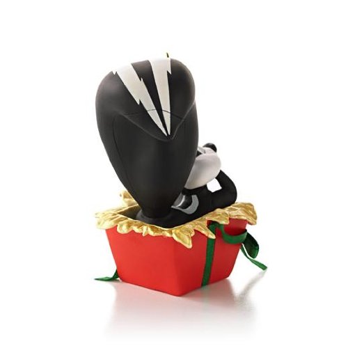Hallmark 2013 "Zee Perfect Gift" Ornament features Pepe Le Pew wrapped up as the perfect Christmas gift with a note that says "Merry Kissmas" 1.75" W x 2.75" H x 2.25" D