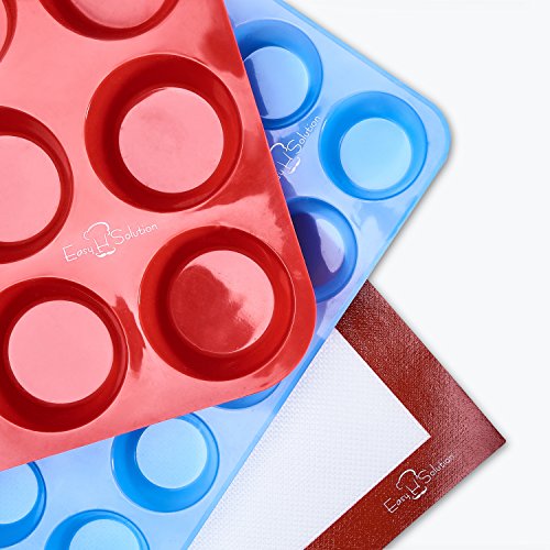Easy Solutions Silicone Baking Ware Set – 1 Large Silicone Cupcake Pan, 1 Small Muffin Pan & 1 Silicone Baking Mat Set – Food-Safe, Non-Stick Silicone – Microwave, Oven, Fridge & Dishwasher Safe
