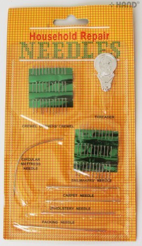 -. Feature : 27 Self-threading needles + 1 threader / Curved mattress needle, straight upholstery needles / Sack needle, Sail needle, Carpet Needle / Daily hand sewing needles / Embroidery needles