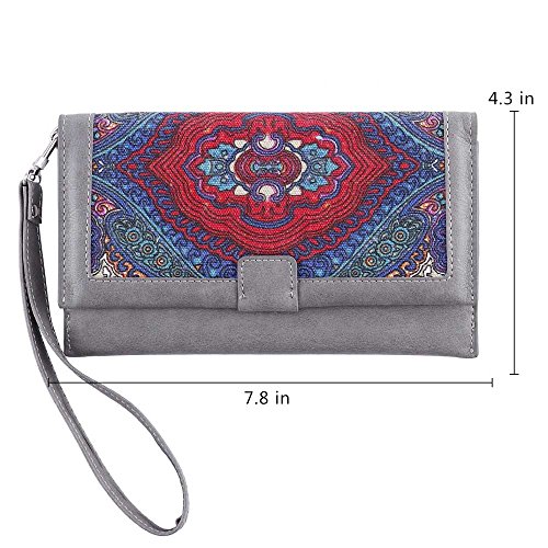 Womens Large Capacity Canvas Long Clutch Wallet Purse Ladies Wristlet Handbag for Coin, Cash and Cellphone