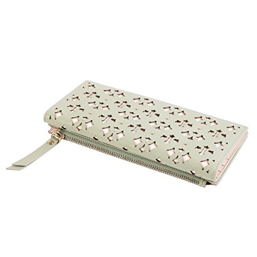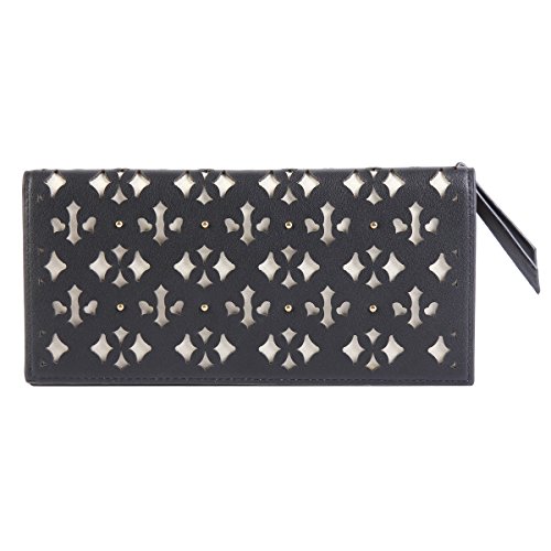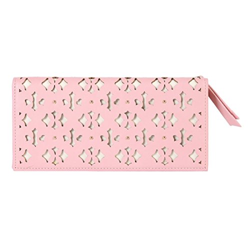 Binding : Apparel Product Description This retro wallet is made of faux leather. The front is in vintage hollow-out pattern design and adorned with studs. Fastened with concealed snap. Outside has 1 side zipper pouch. Inside is 2 main layers for you to save cash, ticket or notes; 10 card slots to hold your credit card; 1 photo window to save your precious photo. Measurement approximately: bag length 19cm (7.5 inches); width 9cm (3.6 inches); height 2.3cm (1 inch). 0