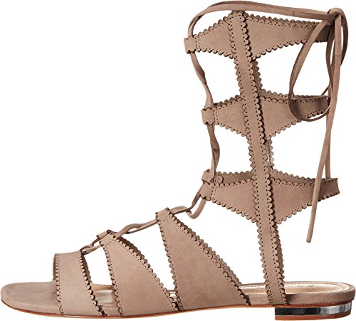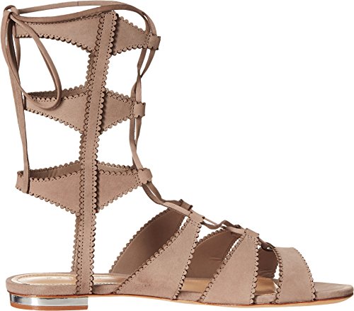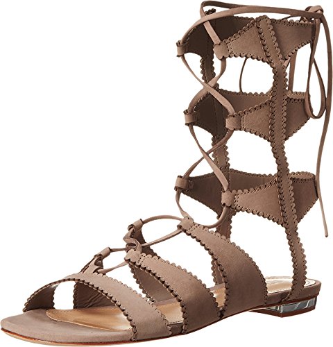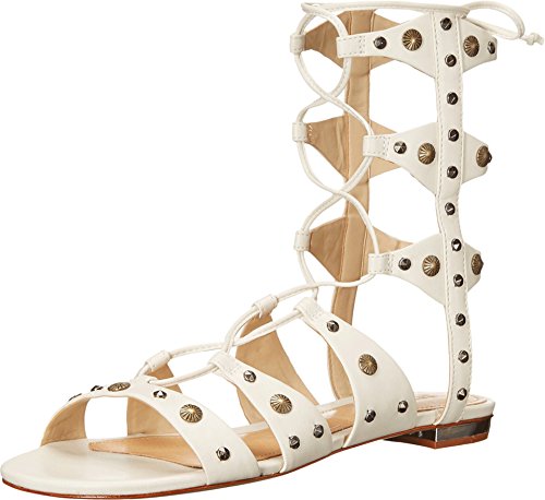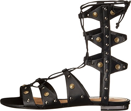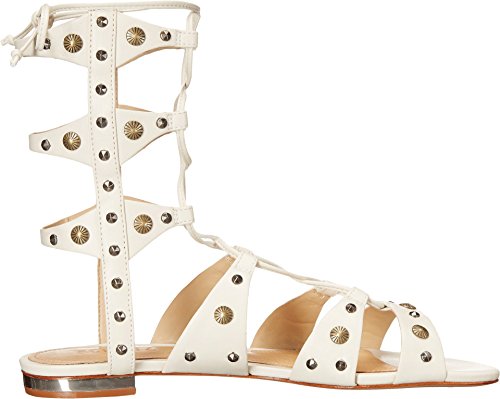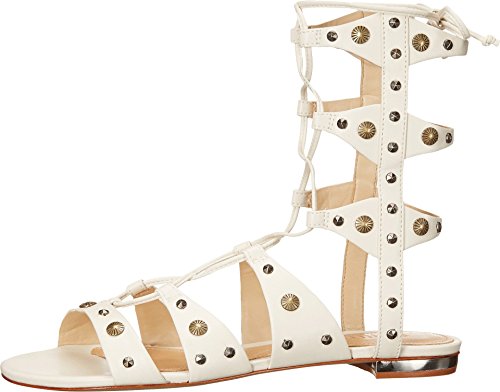 Gladiator-inspired sandal featuring strappy upper with lace-up closure and metallic studs