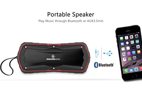 Title : Rugged Geek GEEKBEATS JOLT5 10W X-Bass Wireless Portable Bluetooth Speaker and Charger / USB Power Bank - Red. IP65 Water and Dust Resistant with 5200mAh Samsung Battery.