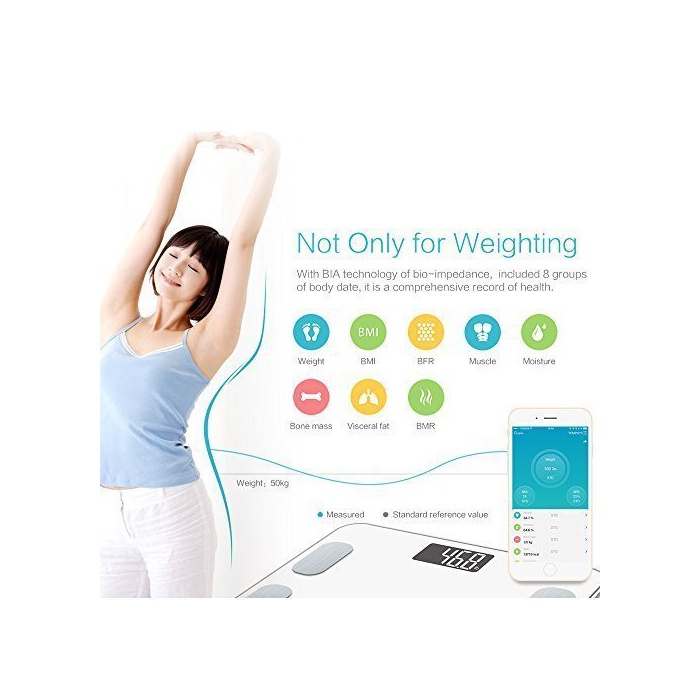 Maer 전자 체중계 Bluetooth 체조성 계건강관리 간단 측정 다이어트 180kg계량초 박강화 유리