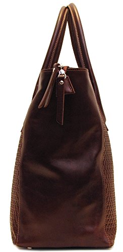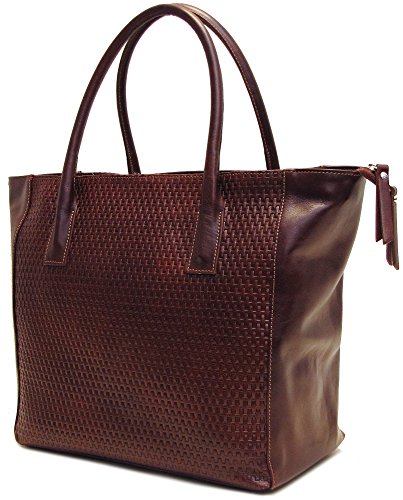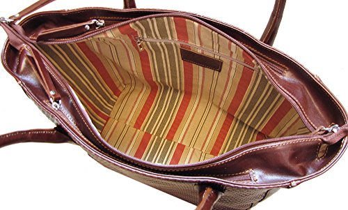 Firenze Tote Bag is made with stamped Italian calfskin leather and comes in Brown and Black. Made in Italy.
