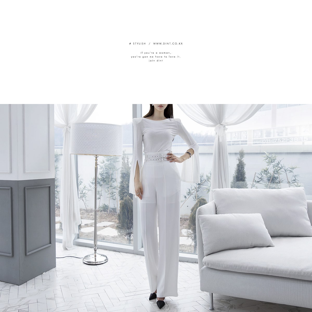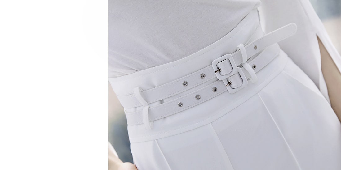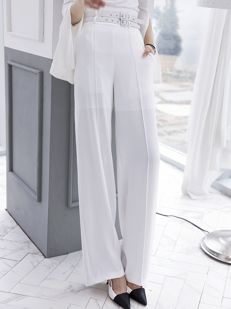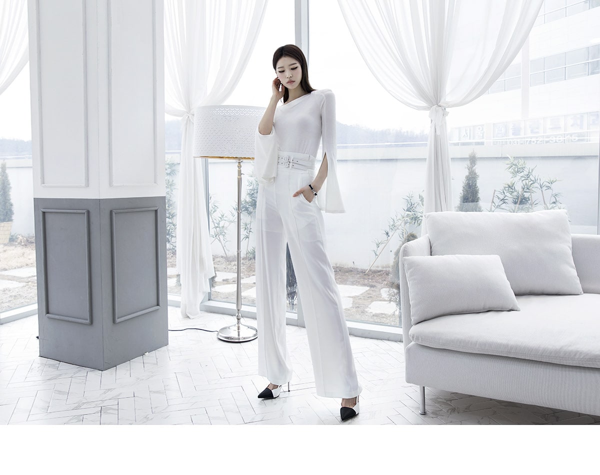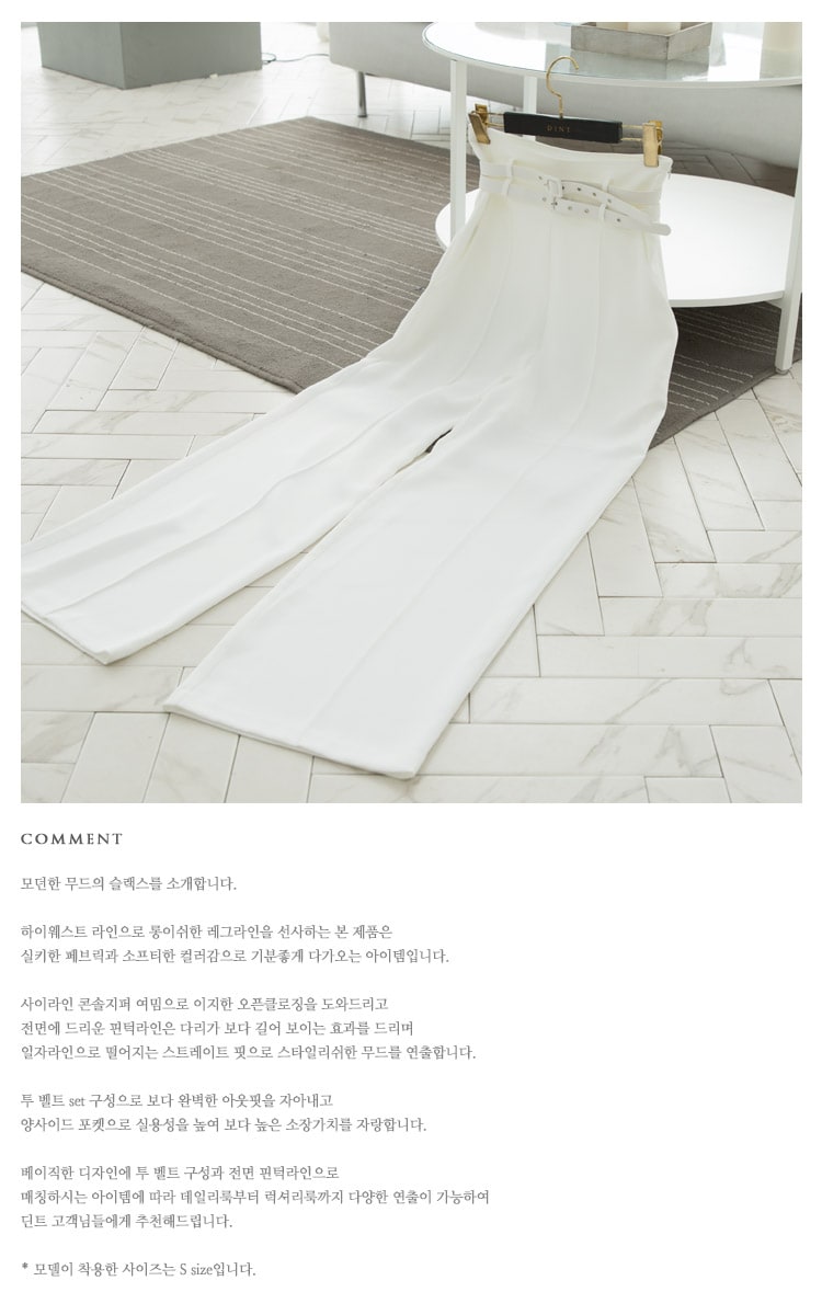 P1834 투 벨트 핀턱 슬랙스(벨트set) Ivory