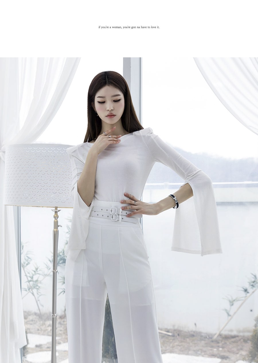 E-4195 클라스 소매슬릿 파워숄더 탑 Ivory