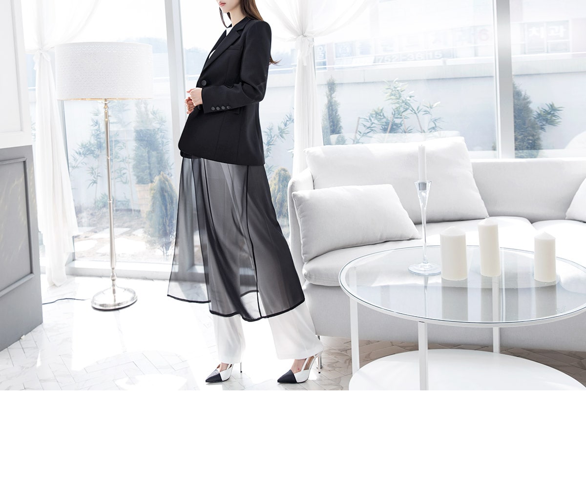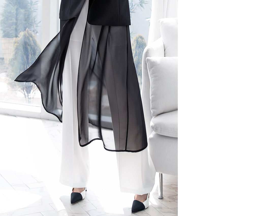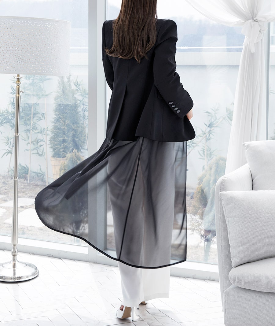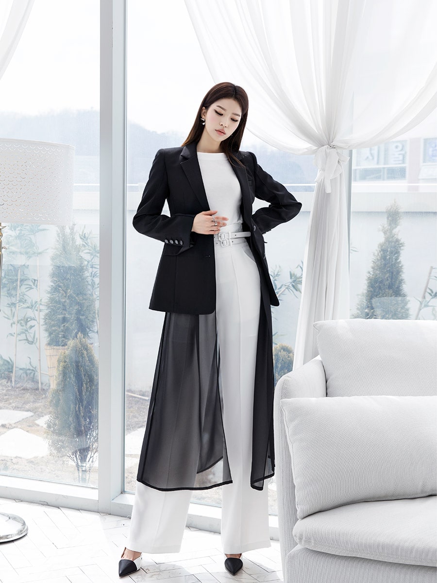 J-4890 모리스 시스루 롱 자켓 Black