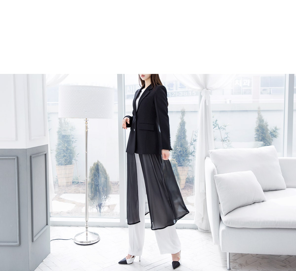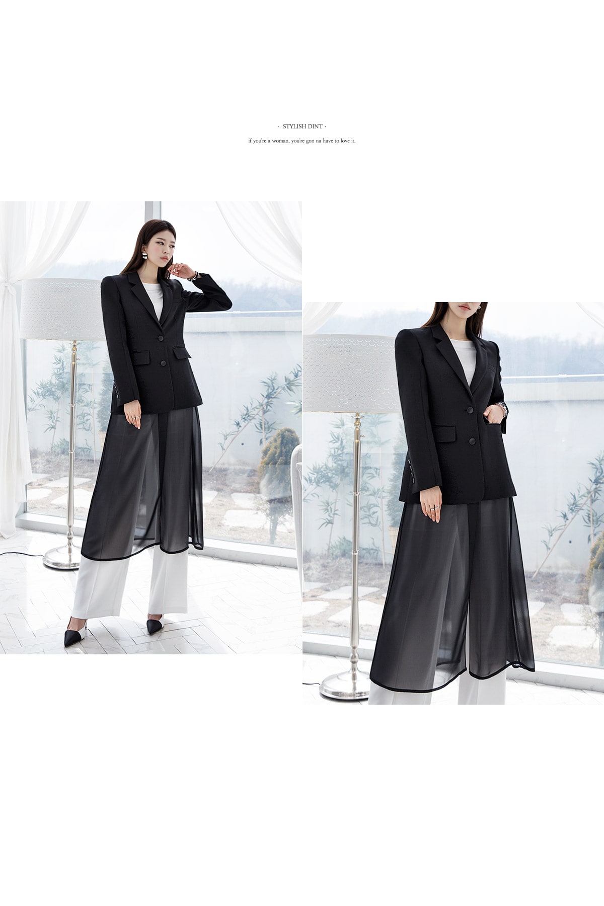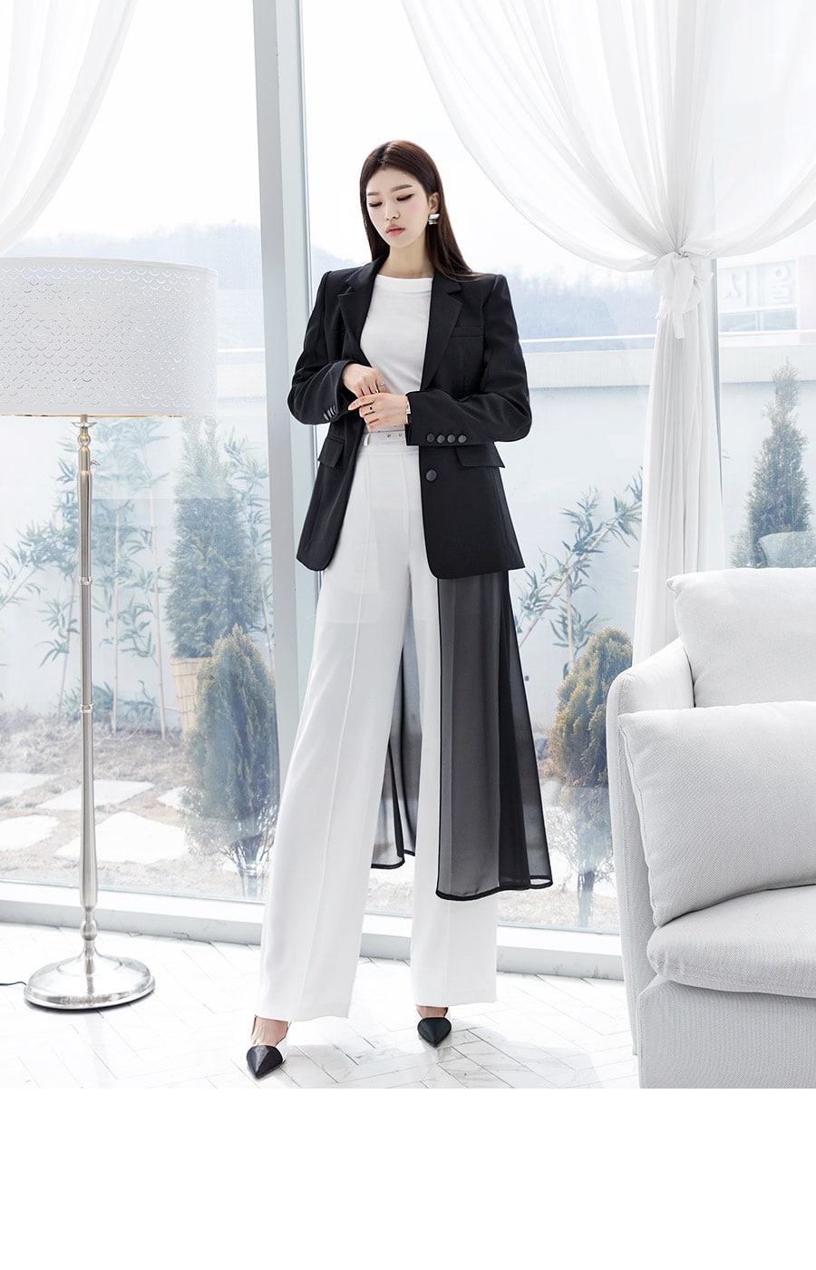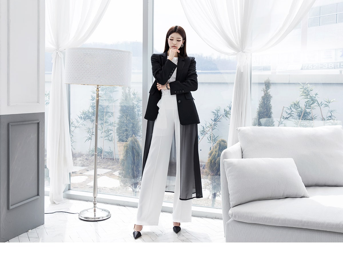 J-4890 모리스 시스루 롱 자켓 Black