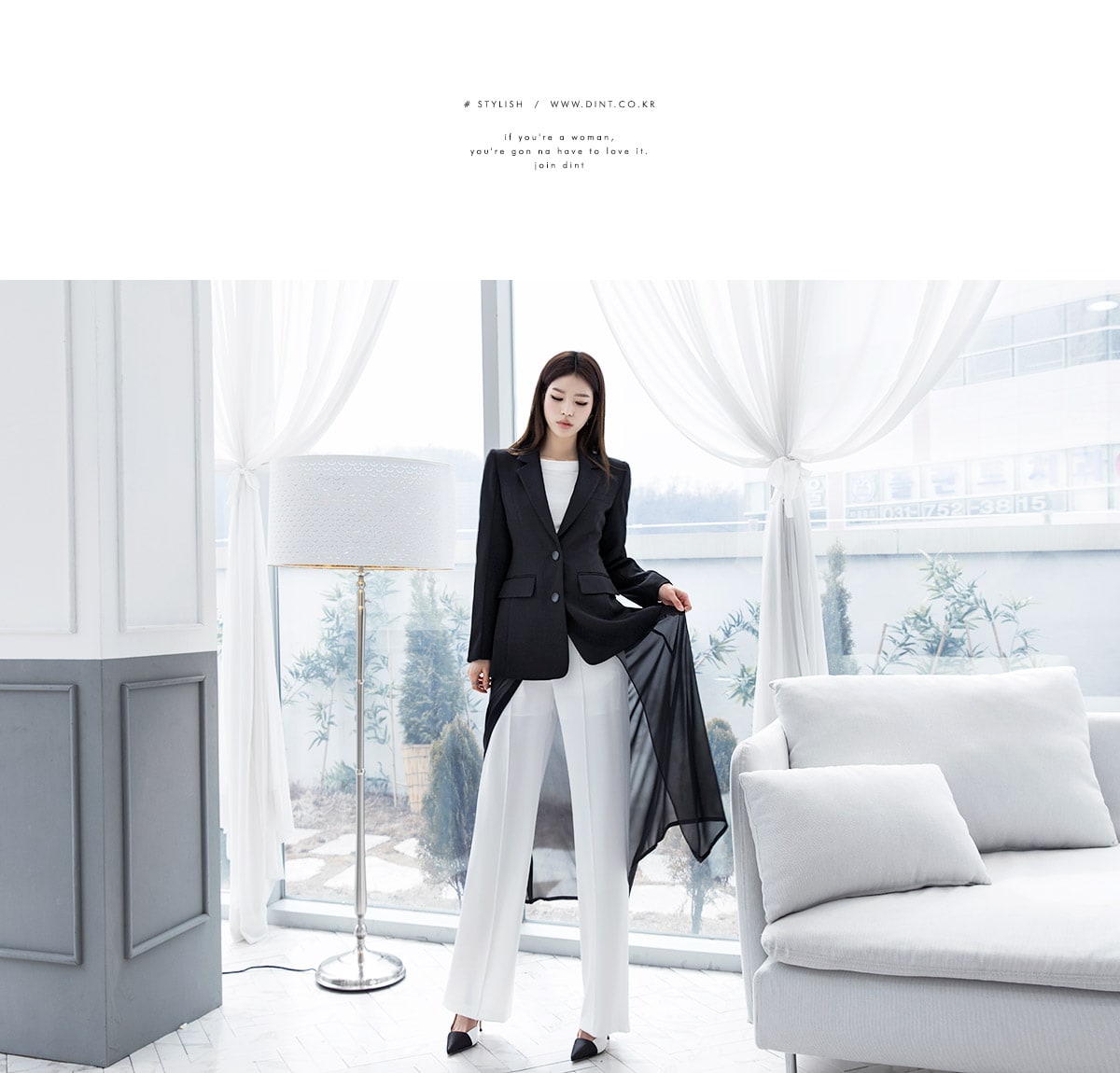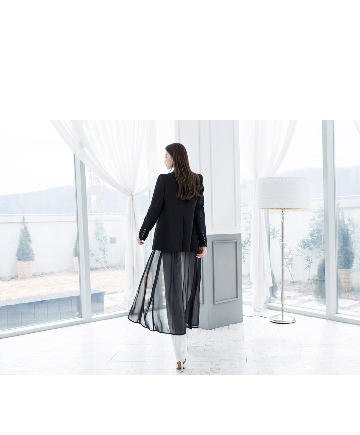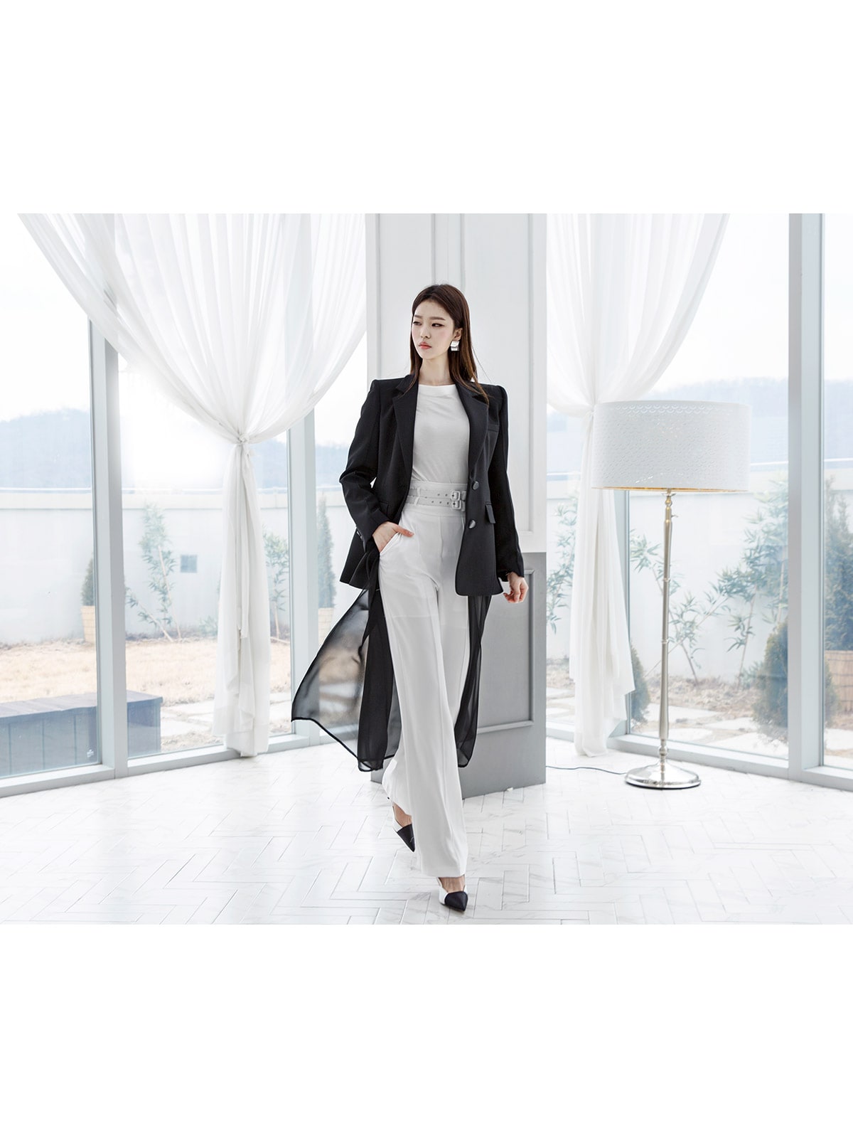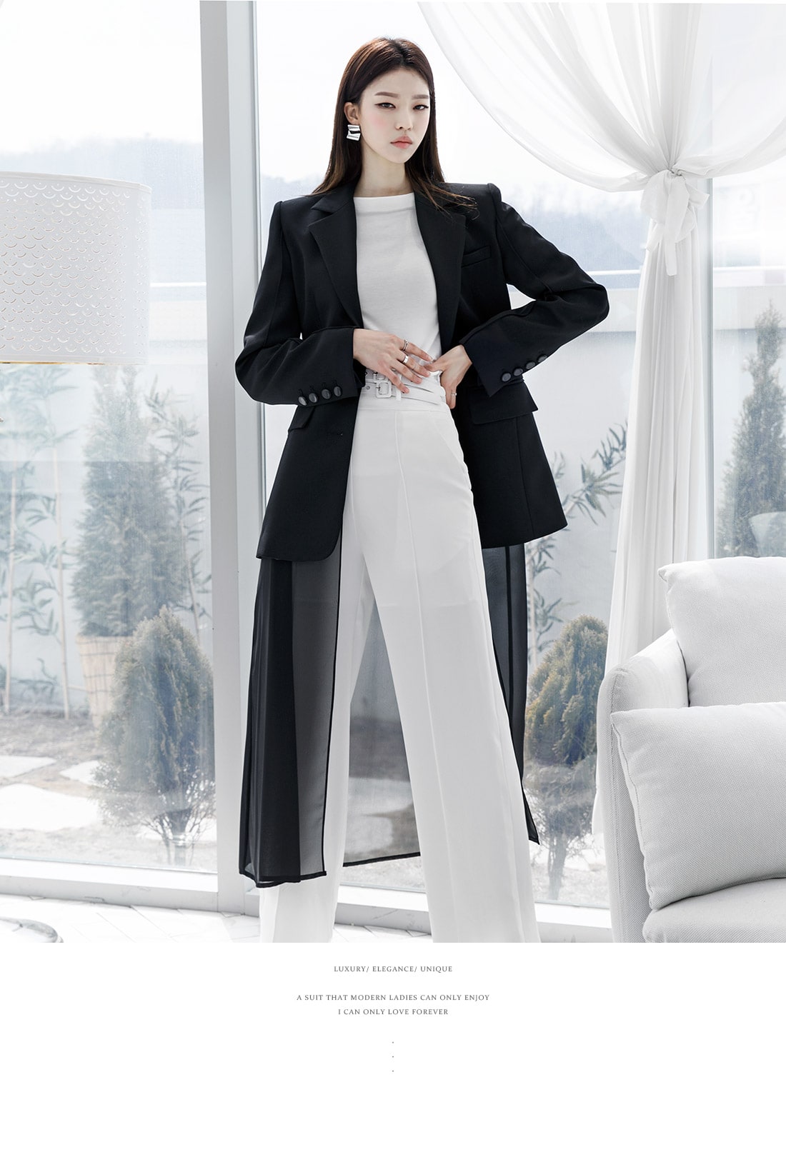 J-4890 모리스 시스루 롱 자켓 Black