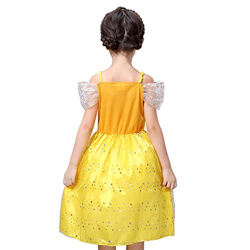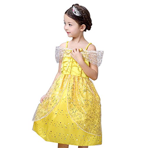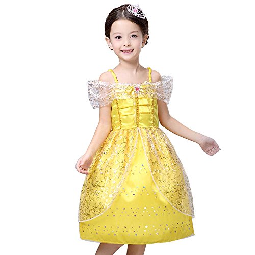 -. Brand : Peachi Princess -. Color : yellow -. Department : girls -. Feature : Deluxe quality girl costume / Inspired by Disney Animation Beauty and the Beast / Costume only, no accessories / Hand made / Made with high quality fabrics -. Label : Peachi -. Manufacturer : Peachi -. ProductGroup : Apparel -. ProductTypeName : CHILDRENS_COSTUME -. Publisher : Peachi -. Studio : Peachi -. Title : Disney Princess Belle Inspired by Beauty & the Beast Dress Costume 4-10