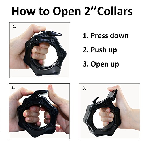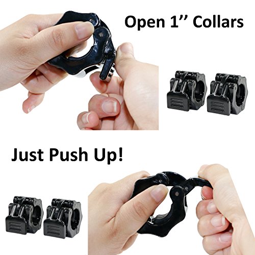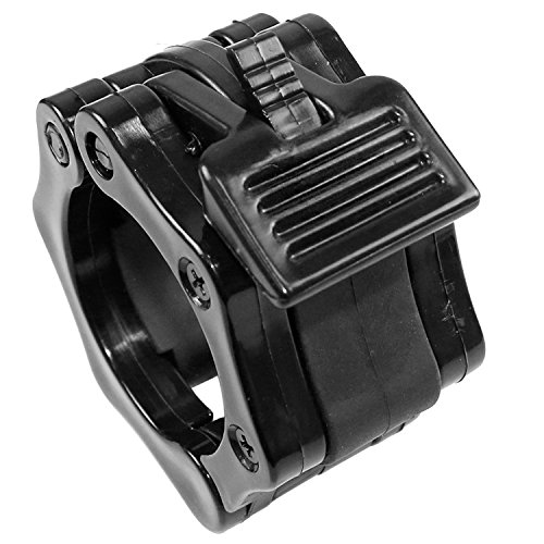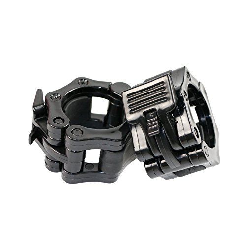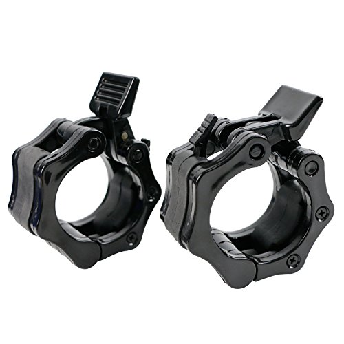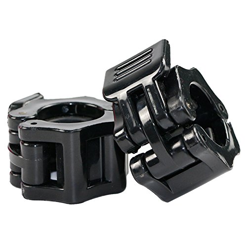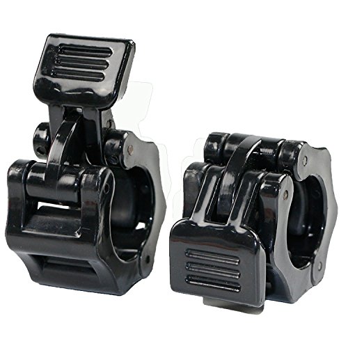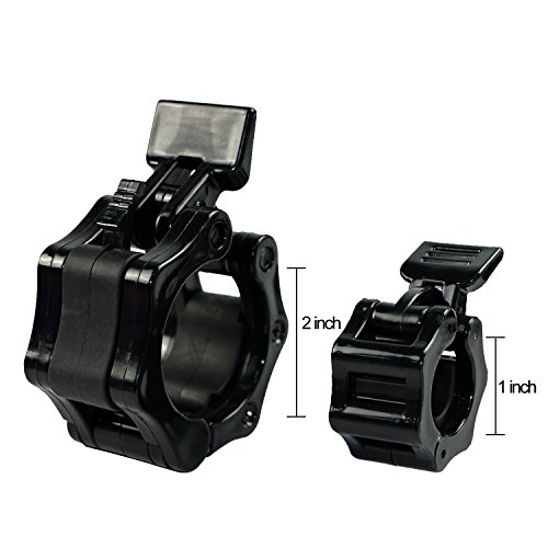 SET OF 2: Package includes 2 barbell clamps, fit for 2 inches Olympic standard size and 1 inch barbells. EASY INSTALL: Quick release, not easy to slide. One-hand installation and removal. Easy to use with tired hands. QUALITY MATERIALS: Reinforced plastic. ABS, not easy to slide, will not damage chrome coatings. 2 SIZES: Barbell clamps have 2 sizes (1 inch and 2 inches dia) available, choose your favorates. GREAT BAR COLLARS: Spring powered Snap-Latch design to keep you safe. Perfect for workouts, crossfit, Olympic lifts, overhead press, deadlifts, bench press, or any other workout using 2 inches Olympic Barbell 0