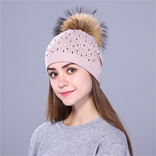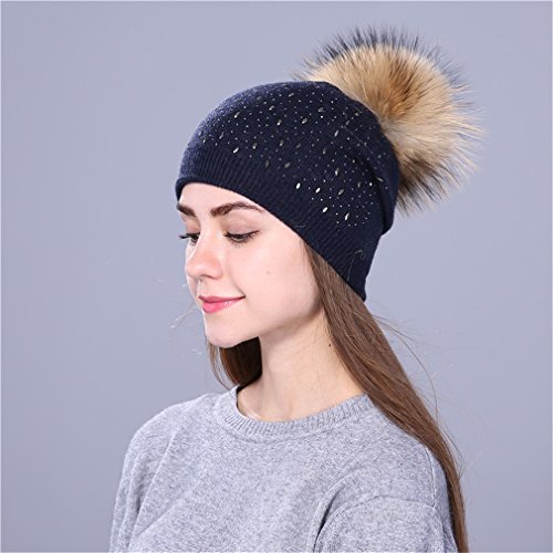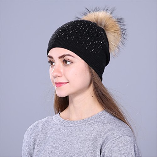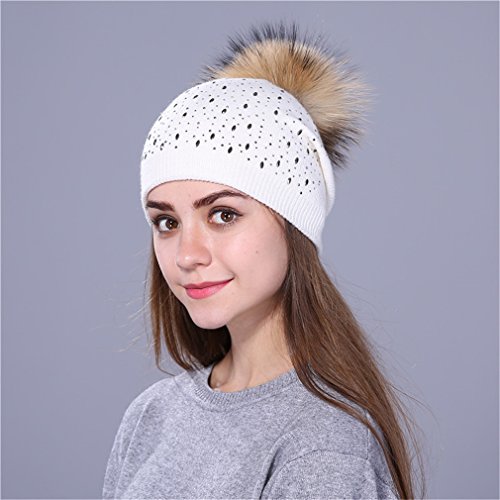 | (Yastyen)/Accessories/Cold Weather Accessories/DIRECT FROM USA/Knitted Beanies Winter Hat Women And Girls Raccoon Fur Pom Pom Hat Wool Skullies Female Cap |