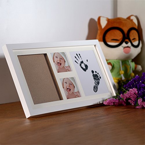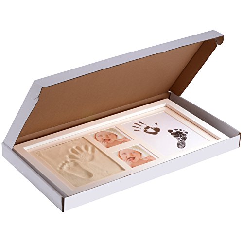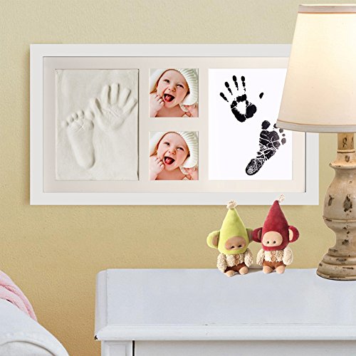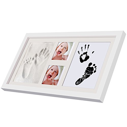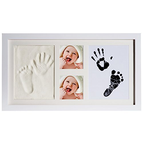 [New Version]PChero Newborn Baby Keepsake 2D & 3D Handprint and Footprint Photo Frame Kit with Safe Clays and Touch Ink Pad for Boys and Girls,...