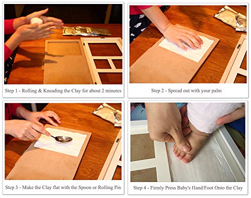 3 EFFECTS IN 1 PHOTO FRAME - 3D Hand and Footprint with Clays Lies at the Left, 2D Hand and Footprint with Touch Ink lies at the Right, 2 Memorable Pictures Lies in the Middle which Give You More Real Effects.