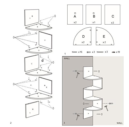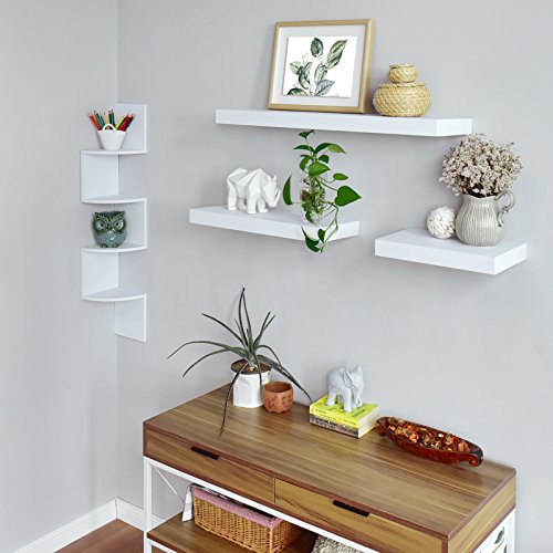WELLAND Zig Zag 4 Tiers Corner Wall Shelf, White