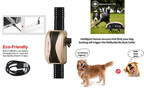 BEFORE USING THE NO BARK COLLAR We request you to read the product manual carefully .To activate the collar gently blow air near the sensor .The bark collar is intended for use for dogs weighing at least 15 pounds and atleast 6 months old . Make sure that there is atleast two finger space between dog's neck and the collar . KEY FEATURES LARGE LED DISPLAY -- The anti bark collar displays 0-7 sensitivity levels to choose for vibration and static shock. When the collar is fully charged LED screen displays 7. ADJUSTABLE LEVELS-- 0-7 Adjustable levels for senstivity, vibration and sound. AUTO PROTECTION / SLEEP MODE -- If the collar is activated 7 times in a minute, it gets into sleep mode for 1 minute . The collar can be reactivated back from sleep mode by pressing any button . This ensures safety of your dog and also helps in case of intruder alert. USB RECHARGEABLE AND RAIN PROOF -- The adjustable nylon collar comes with IPX5 protection which makes it rain proof . The powerful 280 mA battery battery needs recharging after 14 days once fully charged . 100% MONEY BACK GUARANTEE-- This will be your best bet for a no-risk purchase. HURRY AND BUY NOW This makes a much appreciated gift for friends, family, and co-workers. SPECIFICATIONS - Item Weight : 2.5 oz - Collar length : Max 21.5 inches ; Min 3.7 inches - Battery : Lithium Ion 280mA / 3.7 V WHAT IS IN THE BOX ? -1 Receiver -1 Nylon Belt -1 USB Charging Cable -1 Test Bulb - 1 User Manual CE FCC ROHS Certified 0 |