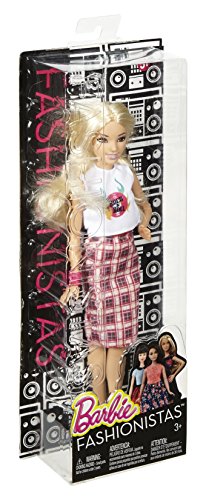 -. Binding : Toy -. Brand : Barbie -. EAN : 0887961328059 -. Feature : Barbie Fashionistas doll includes a "rock & roll" graphic t-shirt paired with a plaid skirt. / Black cut-out heels and a bright pink bracelet complete her look. / Her long, straight blonde hair with dark roots is right on trend. / Find your style and play out your stories! / More variety makes collecting Barbie Fashionistas dolls even more fun. Collect them all (each sold separately, subject to availability). -. IsAdultProduct : 0 -. Label : Mattel -. Manufacturer : Mattel -. Model : DPX67 -. MPN : DPX67 -. PackageQuantity : 1 -. PartNumber : DPX67 -. ProductGroup : Toy -. ProductTypeName : TOYS_AND_GAMES -. Publisher : Mattel -. ReleaseDate : 2016-03-01 -. Studio : Mattel -. Title : Barbie Fashionistas Doll 31 Rock 'N' Roll Plaid - Petite -. UPC : 887961328059 -. Warranty : 1 year warranty against manufacturer defects