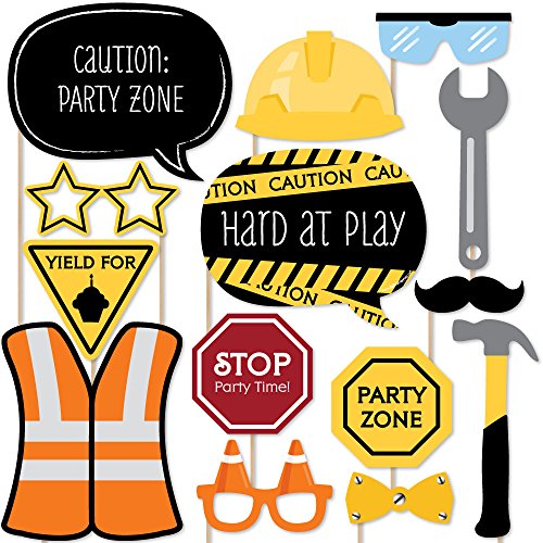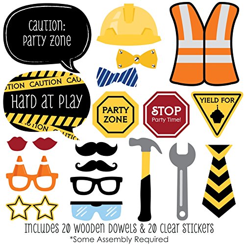 20-Piece Baby Shower or Birthday Party Photo Booth Props Kit INCLUDES 20 Construction Truck photo booth props, 20 wooden dowel sticks and adhesives for assembly. EASY ASSEMBLY: Simply attach the printed DIY photo booth props to the wooden dowels with included adhesive and reinforcing stickers.