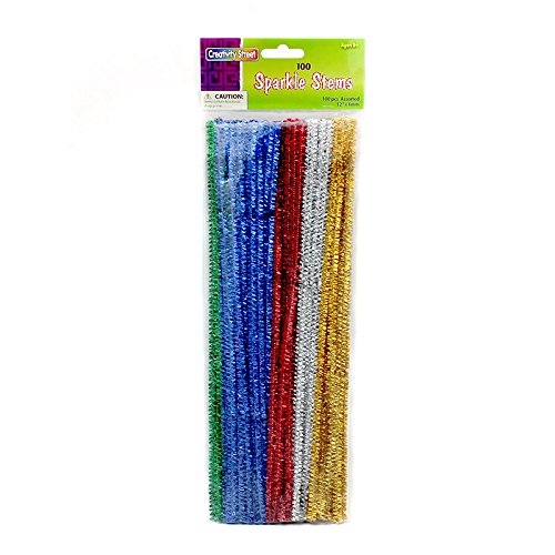 Chenille Kraft creativity street jumbo Sparkle stem wire pipe cleaner measuring 1/4 in x 12 in features twinkling stem that shine like little lights. Sparkle stem is excellent for ornaments, accents, toys and sold as 100 per pack.Feature