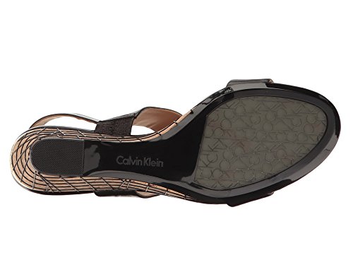 Studio : Calvin Klein Publisher : Calvin Klein Binding : Apparel Product Description Part of the calvin klein essentials package, peony is a mid wedge two piece sandal for a simple modern look. mixed materials and colors gives this simple silhouette some pop. gel pod insert for added comfort is a plus 0