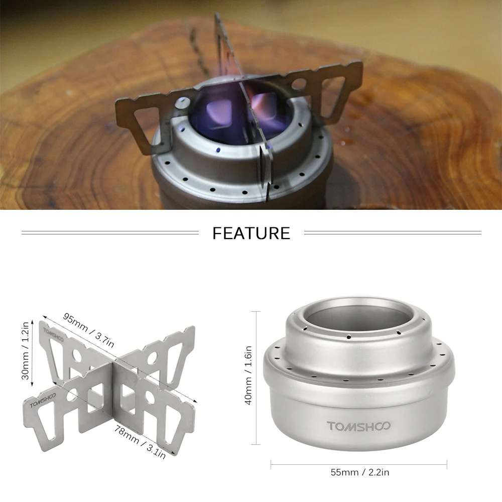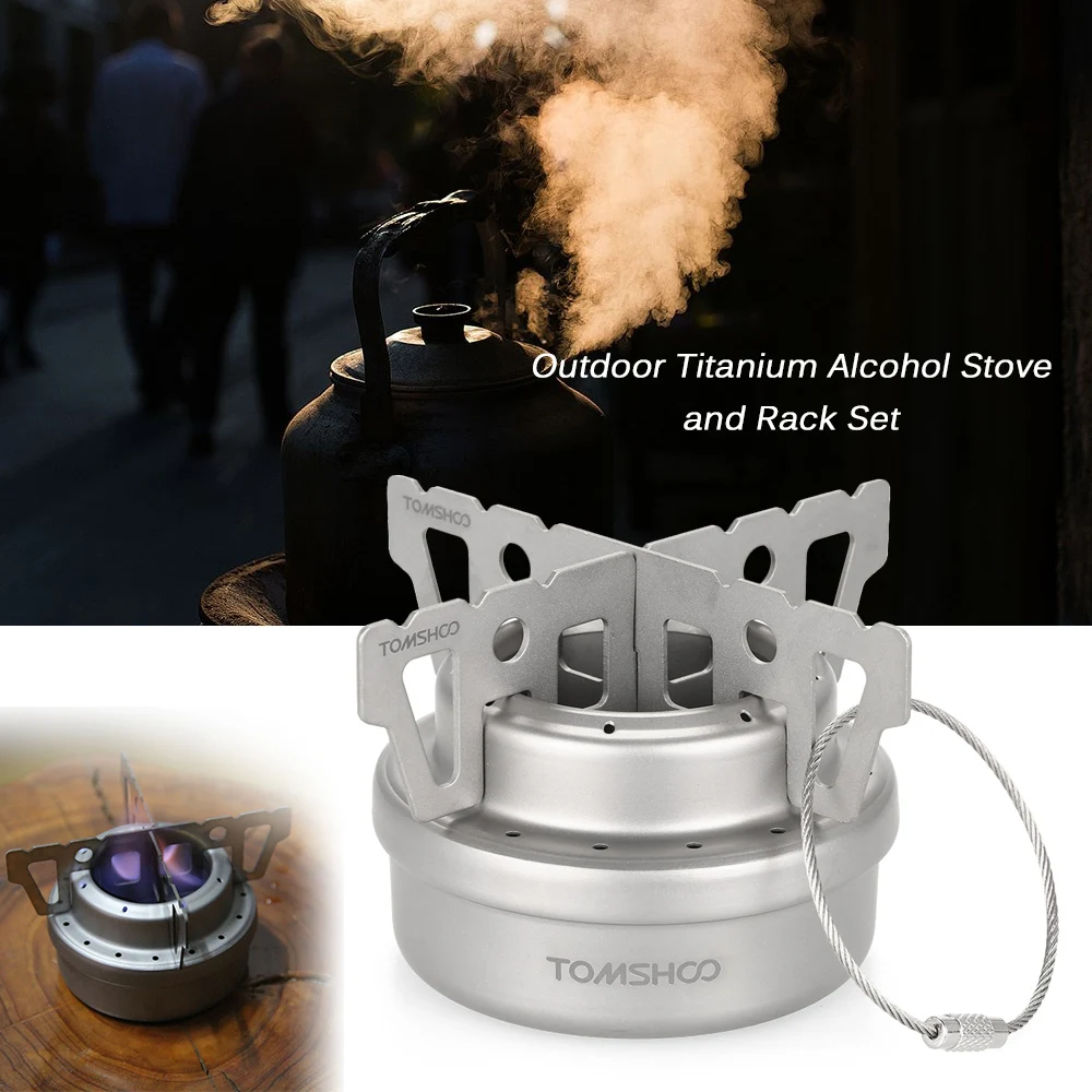 TOMSHOO Outdoor Titanium Alcohol Stove Rack Combo Set Mini Liquid Alcohol Stove with Cross Stand Stove Rack Support Stand