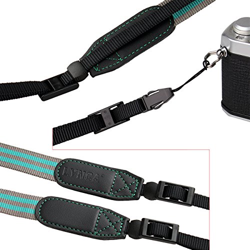 LYNCA Camera Shoulder Neck Strap Belt for SLR DSLR Mirrorless Digital Camera Nikon Canon Sony Pentax Gray & Green