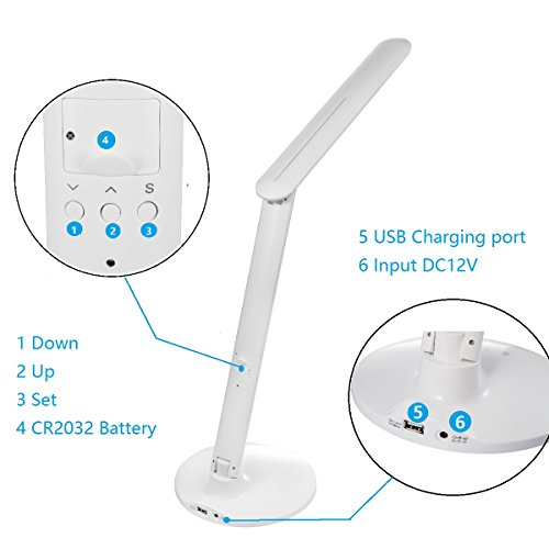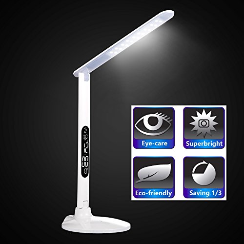 Amemo LED Folding Desk Lamp / Table Lamp with USB Charging Port(10Watt, Eye-care,3 Modes w/ 5 Dimming Levels,Alarm Clock, Calendar, Thermometer)