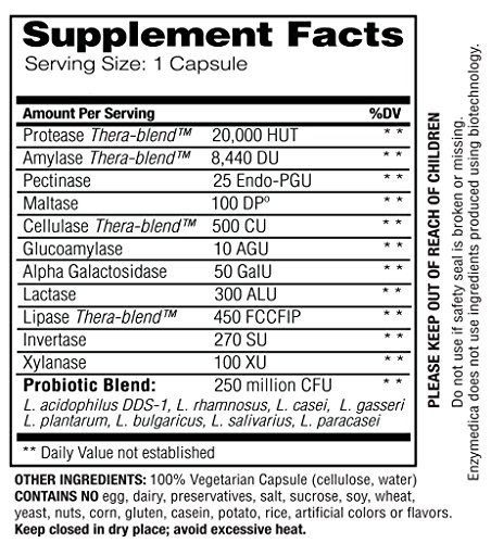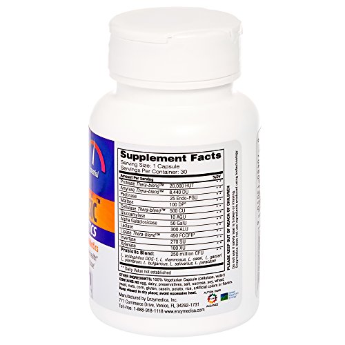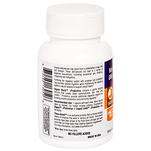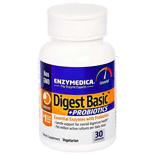 ReleaseDate : 2017-08-18 Studio : ENZYMEDICA Publisher : ENZYMEDICA Binding : Health and Beauty Product Description Digest Basic PROBIOTICS is a complete digestive enzyme formula plus 8 strains of probiotics in a single capsule dose. High potency enzymes provide essential support for digestion along with guaranteed potency probiotics. This gentle formula enhances digestion of all major food groups throughout the entire digestive system. Digestive distress can strike at any age. Occasional gas, bloating, indigestion and irregularity demand a solution that works. Enzymes and probiotics encourage your body's own internal digestive process, making them a simple and practical approach. Combining enzymes and probiotics provides complete digestive care in the convenience of a single dose. Digest Basic PROBIOTICS provides essential support for breaking down a meal, enhancing nutrient absorption and decreasing occasional gas and bloating. The formula utilizes Enzymedica's exclusive Thera-blend process for the enzymes protease, lipase, amylase and cellulase. These enzymes are able to work in a broad pH range and have the ability to break down more bonds. This means that they work longer in the body and have the ability to break down more protein, fats and carbohydrates than single enzyme products' 0
