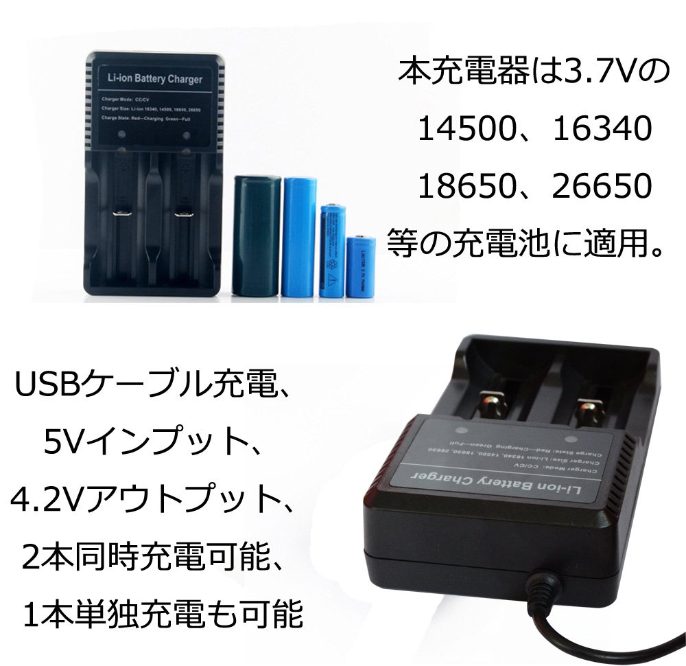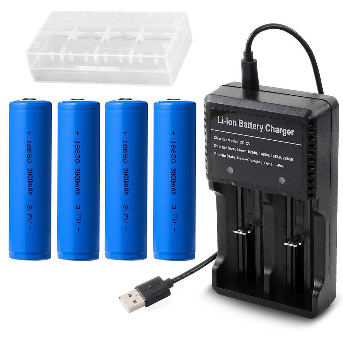18650 3.7V Li-ion battery 4 pieces, charger 1 piece, battery storage case 1 piece