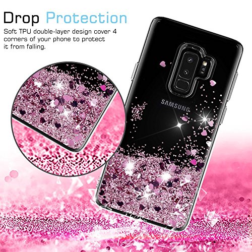 -. Feature : Compatibility - Designed for Samsung Galaxy S9 Plus. ⊗ Not fit for Galaxy S9.⊗ / Unique Style - Ultra slim and lightweight. Easily fits in your pocket or purse. Floating glitter design. 3D liquid with colorful glitter and heart patterns float inside of case. / Protective Shockproof Bumper: Galaxy S9 Plus Glitter Case glitter liquid case is made by TPU+PC hard back cover which can protect your phone from scratching, dropping and shocking with light weight. / Environmental Protection Materials: This Galaxy S9 Plus Glitter Case glitter case make by environmental protection materials, it pass the MSDS&SGS testing. The liquid is safety and will not harm anybody, please use it without any worried. / Advanced Protection - Precise cutouts allow for easy access to all buttons, speakers, and ports. Front raised lip protects the screen while face down while raised back lip protects the camera from being scratched. Easy to remove and install.
