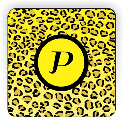 Rikki Knight Letter "P" Initial Yellow Leopard Print Monogrammed Design Square Fridge Magnet