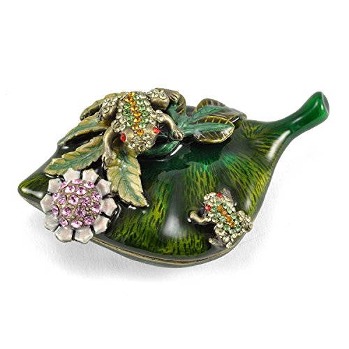 Frogs on Leaf Crystal Studded Pewter Jewelry Trinket Box
