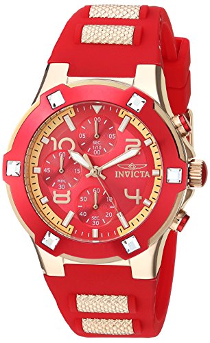 Invicta Women's 'BLU' Quartz Gold and Silicone Casual Watch, Color Red (Model: 24194)
