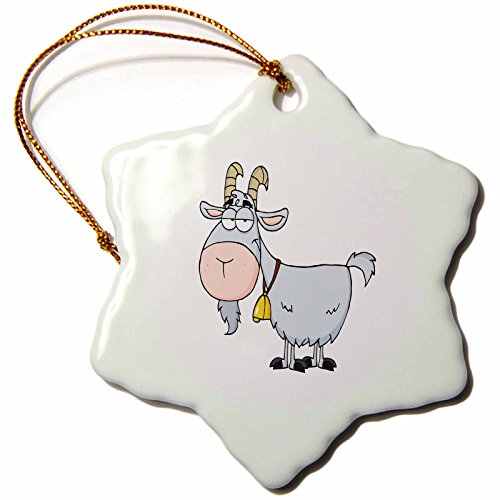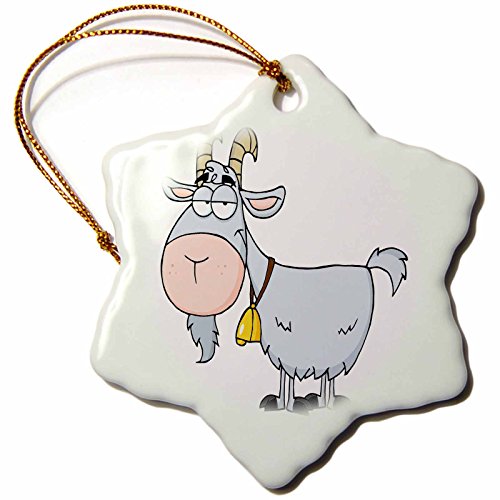3dRose orn_118516_1 Cartoon Billy Goat Funny Animal Cartoon-Snowflake Ornament, Porcelain, 3-Inch