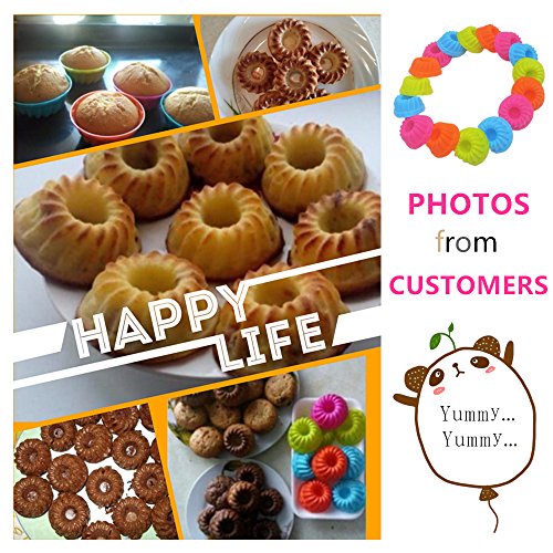 Fluted Cake Pan | 12-Pack Pumpkin Silicone Fancy Dessert Mold, Jello and Mini Cakes, 2.55 Inch Mini Bundt, Bonus 2 Small Round Cake Cups