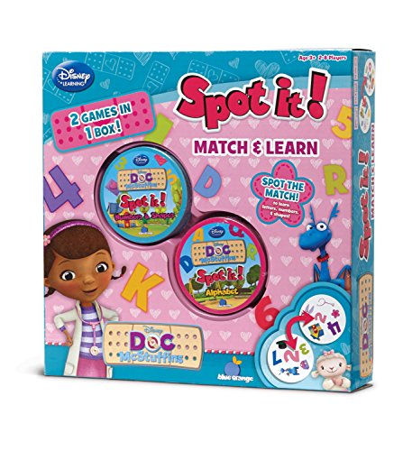 -. Feature : 2 games in 1 / Kids visually and verbally identify letters, numbers, and shapes in varying orientations along with characters and objects from Doc McStuffins / There is always one match between any two cards; Spot it first to win / Develops visual perception skills, attention, and fine motor skills / Includes 31 Numbers and Shapes cards, and 55 Alphabet cards
