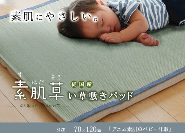 【商品名】純国産 やわらかい草の敷きパッド 『デニム 素肌草 ベビー汗取P』 70×120cm