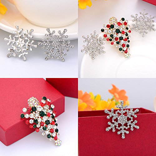 Package includes: 1 x Christmas tree brooch pin 2 x Rhinestone snowflake brooch pin