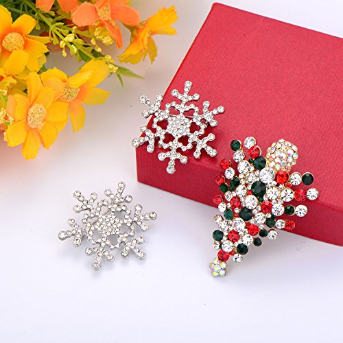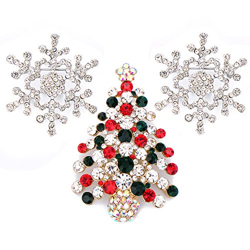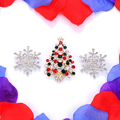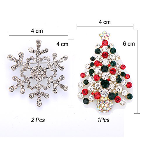 Christmas brooch pin with different styles: This set comes with 1 piece crystal Christmas tree brooch and 2 pieces rhinestone snowflake brooch, made of rhinestone and alloy, stylish and elegant, make you the most charming in the Christmas party. Good match with clothes for different occasion.