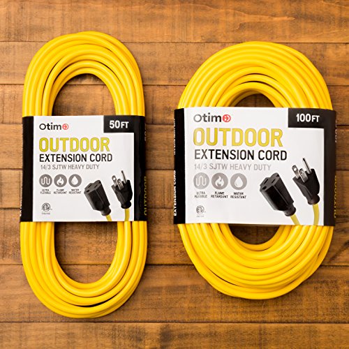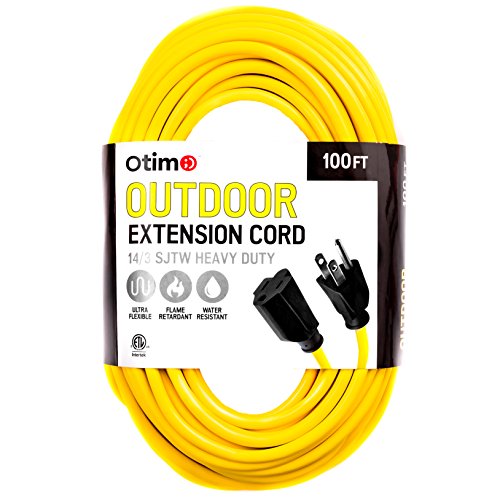 Otimo 100 ft 14/3 Outdoor Heavy Duty Extension Cord - 3 Prong Extension Cord, Yellow