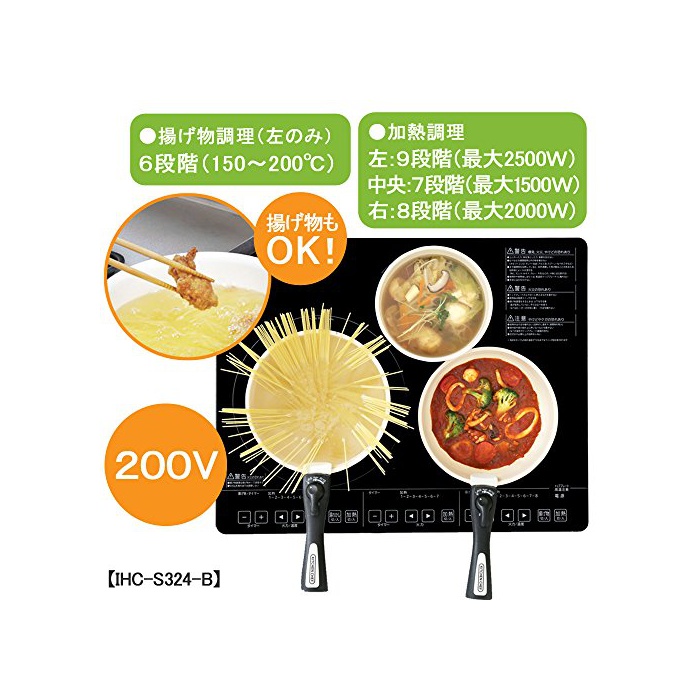원본상품명: アイリスオ?ヤマ 3口 IHクッキングヒ?タ? 200V ブラック IHC-S324-B