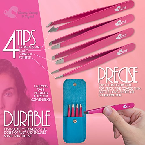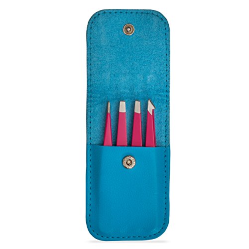 Tweezers 4 Piece Precision Set for Eyebrow; Eyelash; Long and Pointed Tweezer with Case