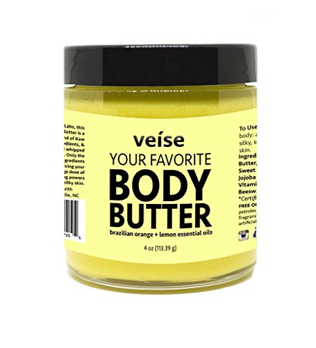 Veise Body Butter with Shea, Hemp Oil, ArganOil - Hydrating, Non Oily 4 oz (Brazilian Orange & Lemon)